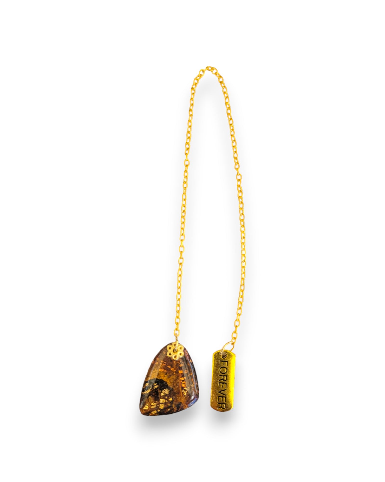 This bookmark is made from polymer clay with a resin finish. The autumn brown toning shimmer and sparkle in the light. The ideal place keeper for reading in the sun. The word 'FOREVER' is written on the gold tag.