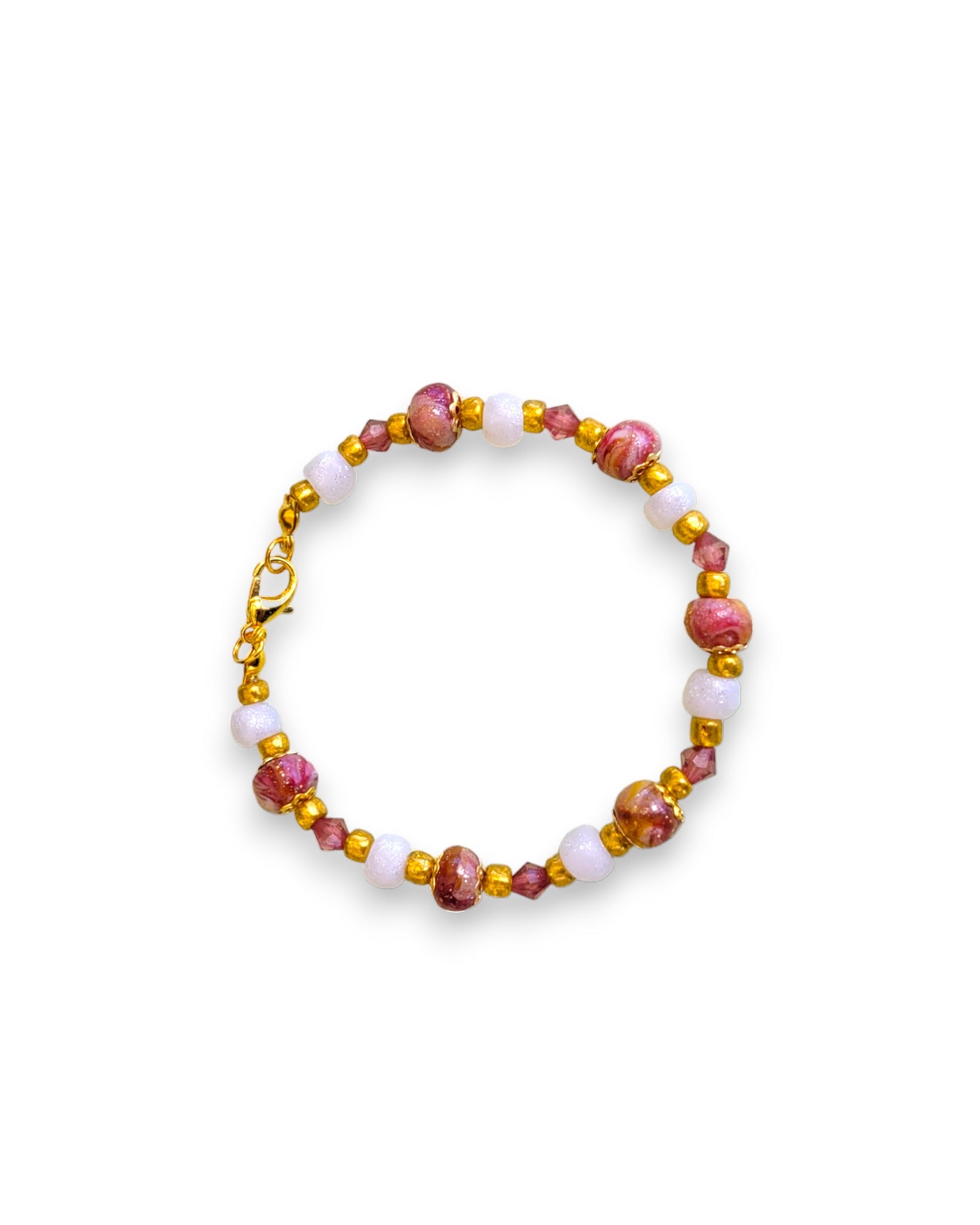 This vibrant bracelet features handmade beads are from Polymer clay. Some additional beads have been added to create this look.