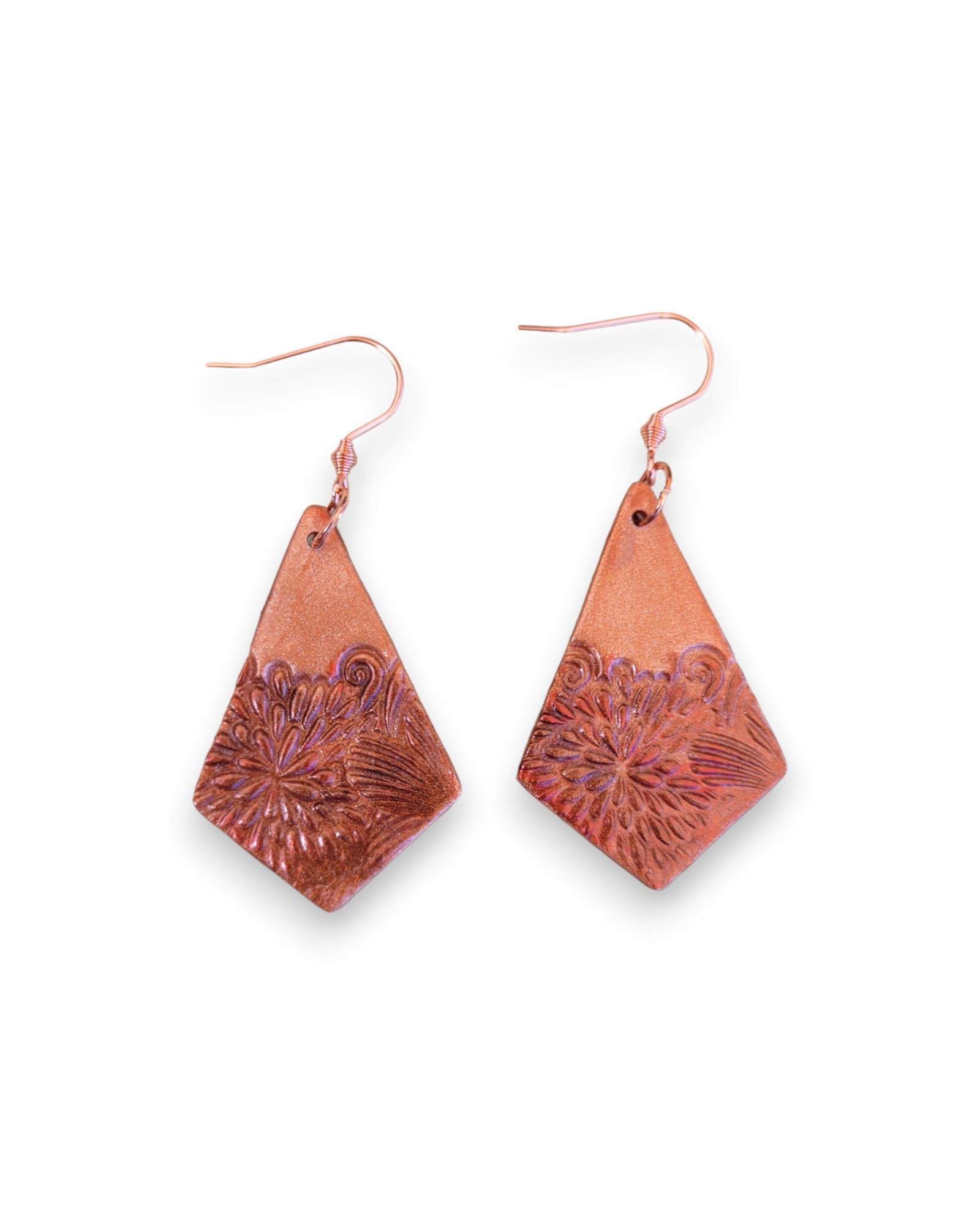 These Autumn toned textured earrings are made from polymer clay with a lacquer finish on the front and a sparkly resin finish on the back. As they sway in the breeze, the autumn colours will shimmer.