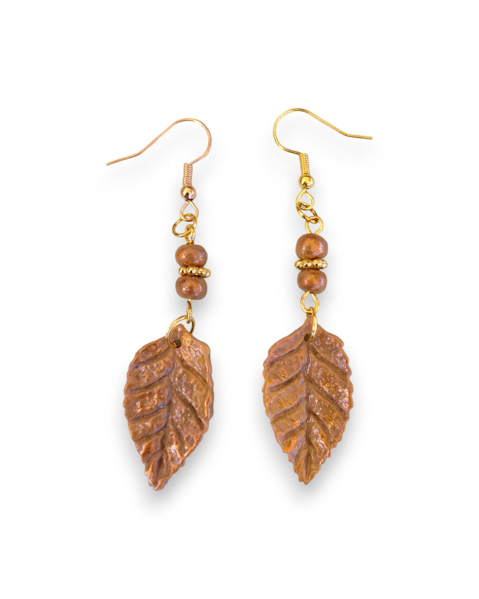 These Tan textured earrings with Antique Gold highlights are made from polymer clay with a lacquer finish on the front and a sparkly resin finish on the back. As they sway in the breeze, the rich golden colours will shimmer.