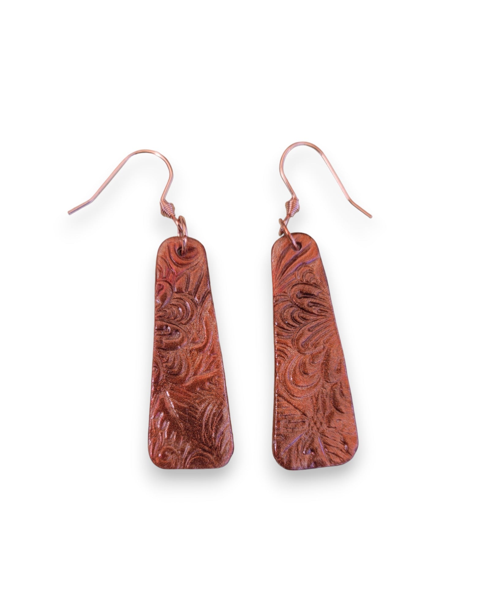 These Autumn toned textured earrings are made from polymer clay with a lacquer finish on the front and a sparkly resin finish on the back. They almost look like fancy carved leather.
