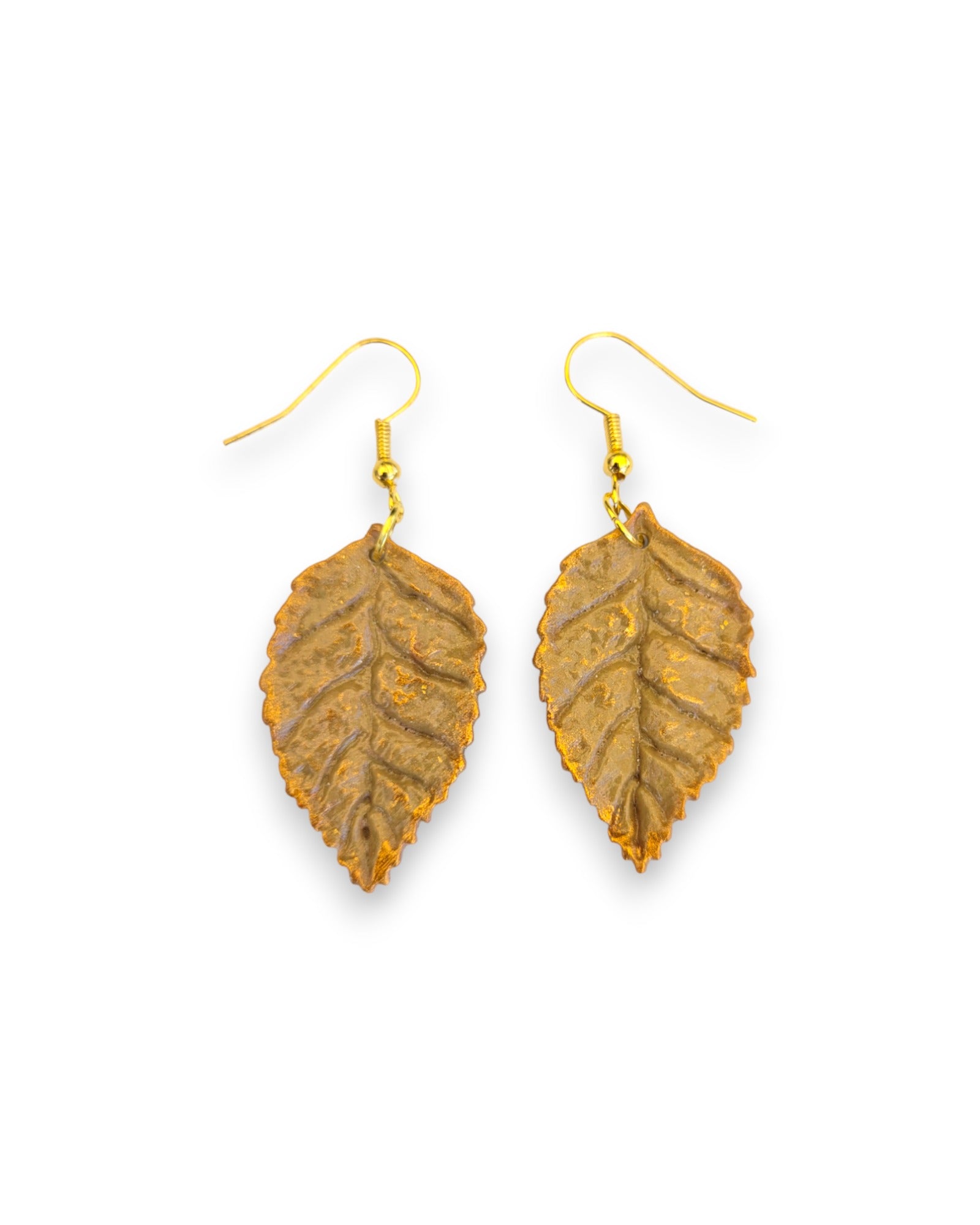 These Tan toned textured earrings with coppery gold accents are made from polymer clay with a lacquer finish on the front and a sparkly resin finish on the back. As they sway in the breeze, the rich coppery gold colours will shimmer.