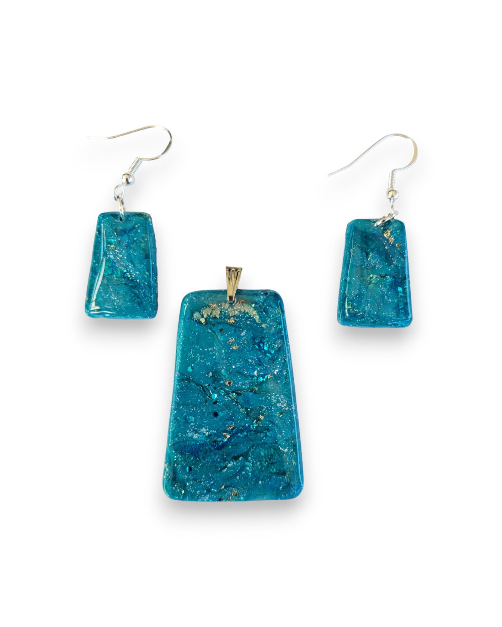 This set is made from polymer clay with a resin finish. This set looks lovely in the sun as it looks like the light reflecting of the open ocean.