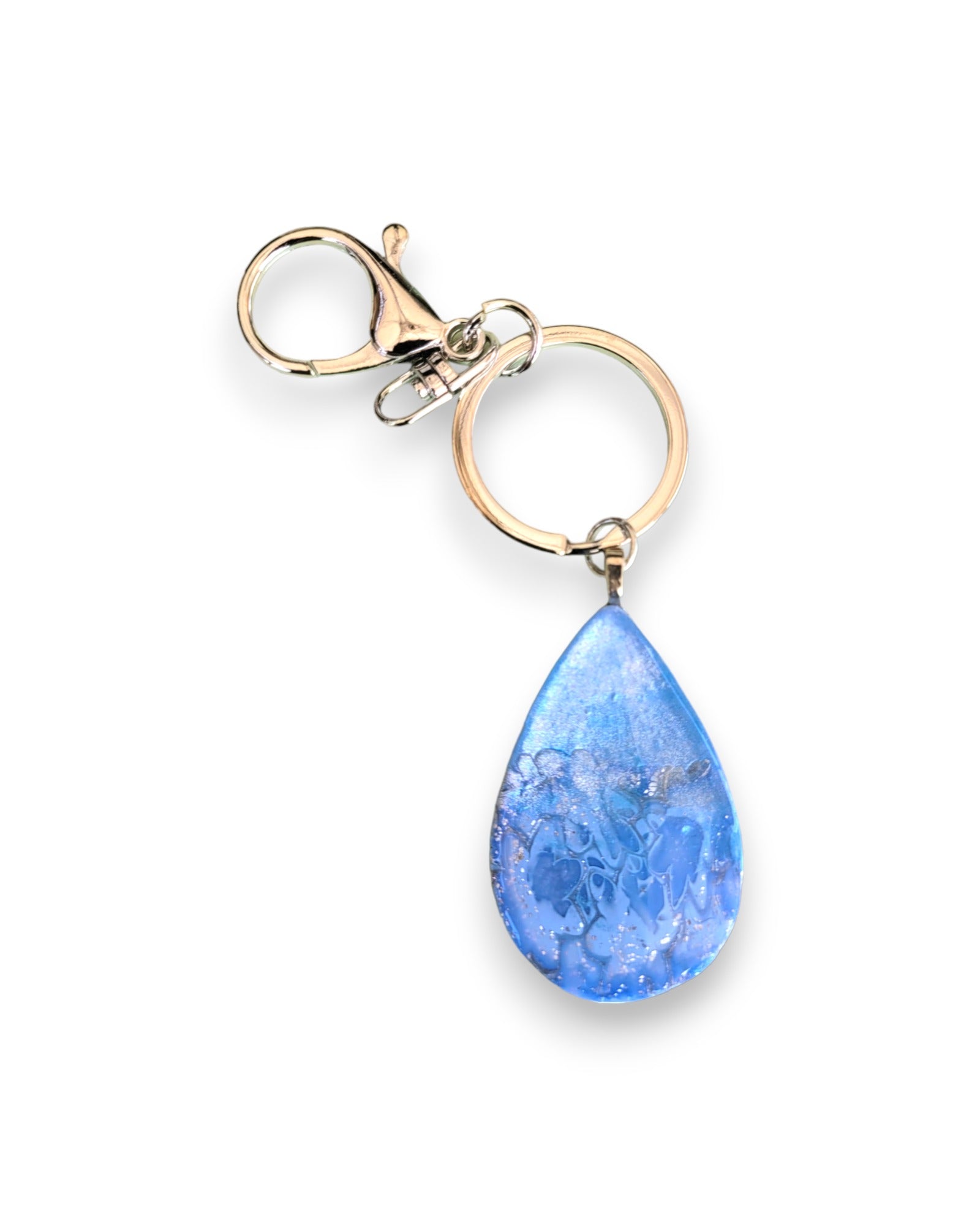 This stunning keychain is made from polymer clay with a resin finish. It has lovely shimmer and sparkle that looks great in the light.