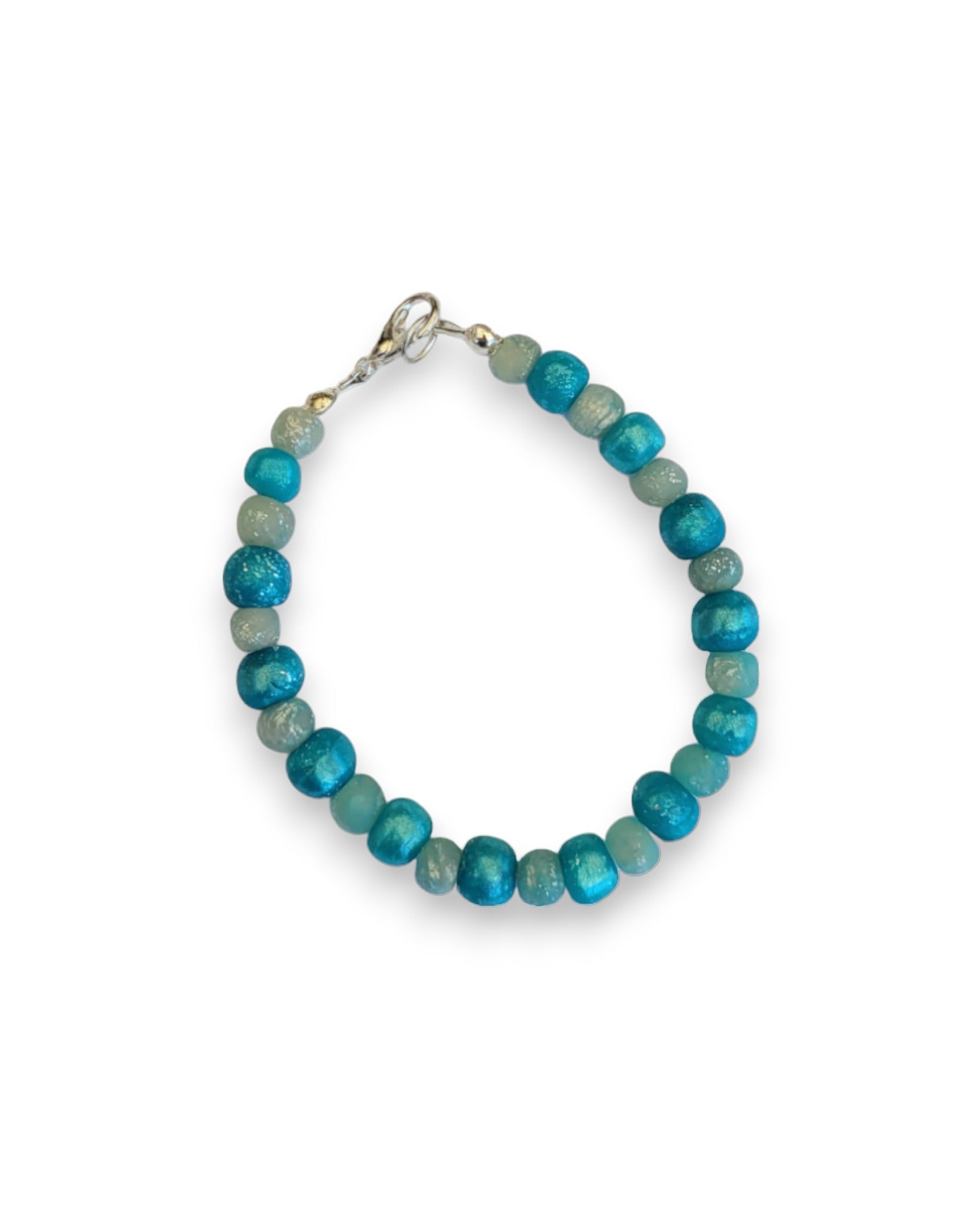 This lovely bracelet has handmade beads that are made from Polymer clay. This bracelet has more of a natural finish for the people that prefer a little less bling, but still some bling never the less.