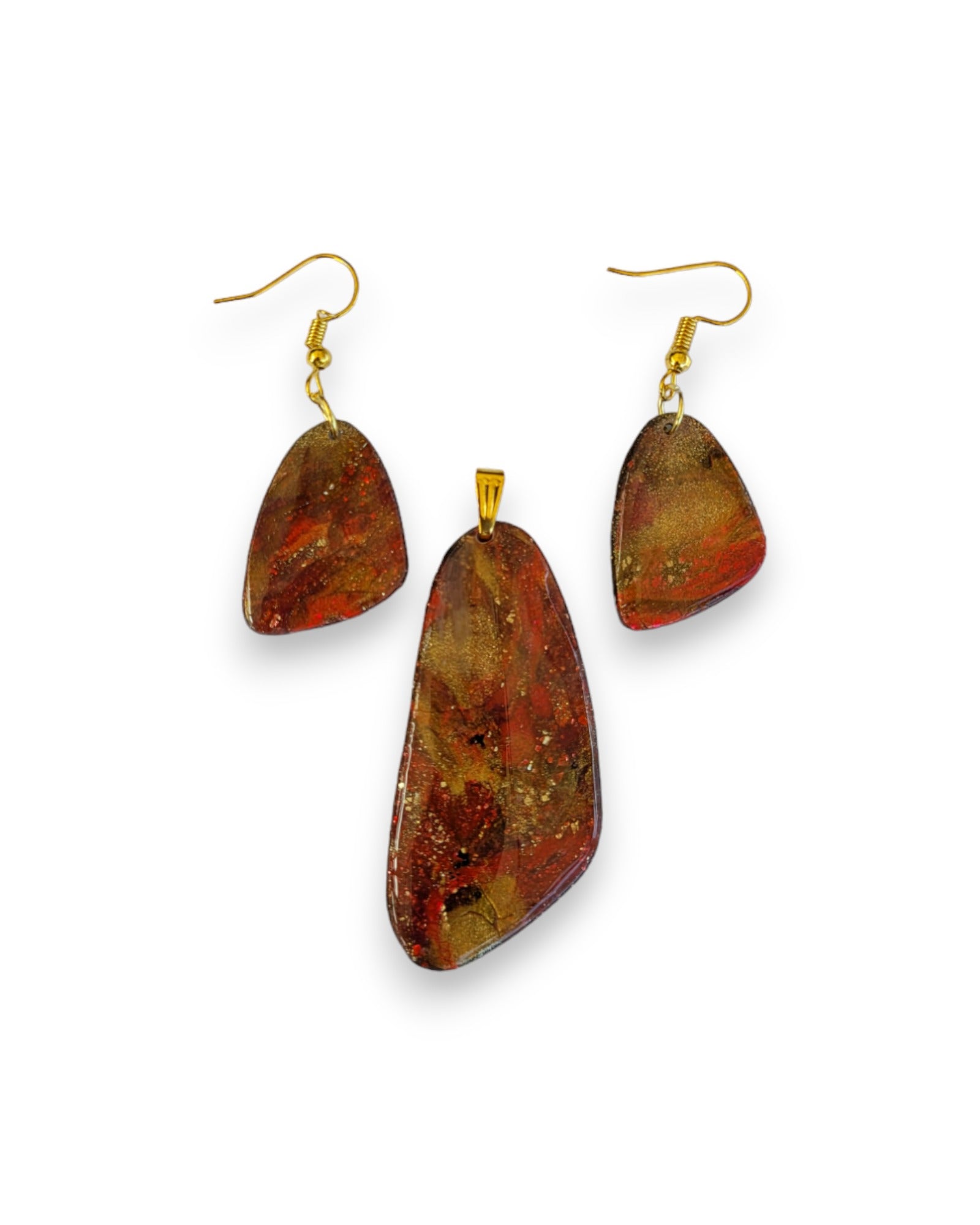 This set is made from polymer clay with a resin finish. When the light hits this set, the colours in the design come to life, with lots of shimmer and sparkle.