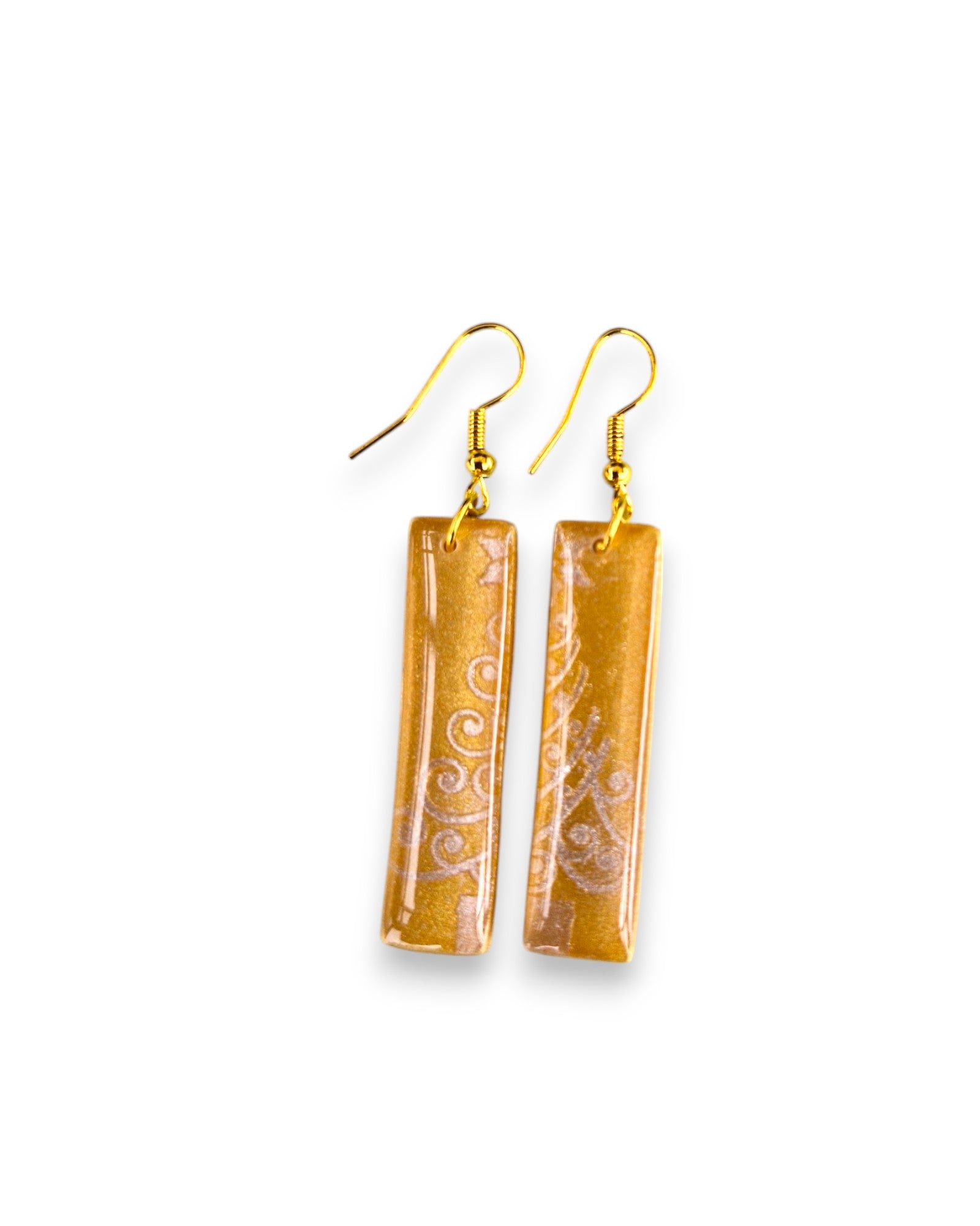 These earrings are similar to a Whisper of Christmas and have a an elegant, shimmering gold background with a whisper of a Christmas tree across both earrings. They are an elegant hint of Christmas that you may not notice at first glance. A perfect for a Christmas outfit when you want just a hint of elegant fun.