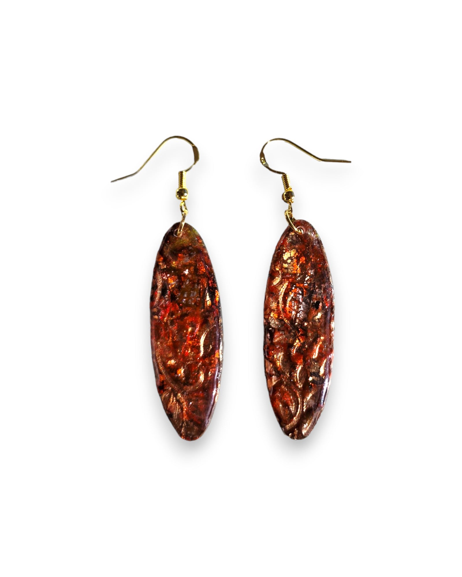 These Textured earrings have lots of shimmering colour tones with a gold patterned finish. They remind me of a cosy winter throw you can snuggle in by the fire.